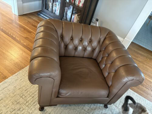 Skeptical we decided to give Rub and Restore a try. Changing the colour a butterscotch to Tobacco. WOW! It looks like a whole new couch.