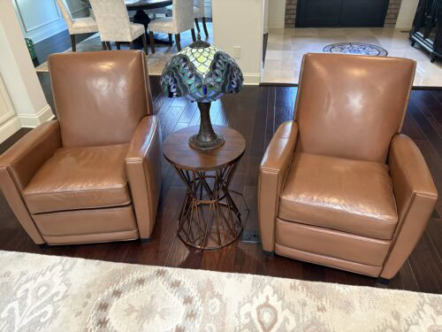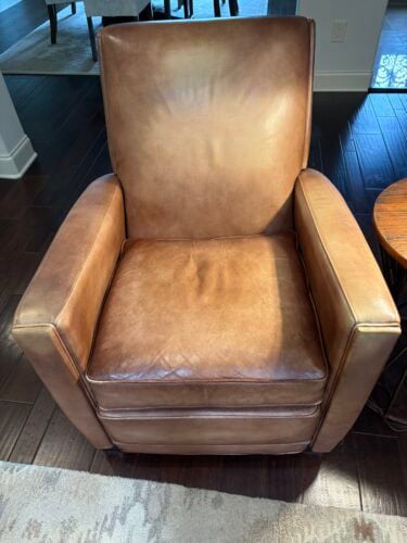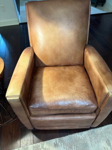My favorite chair was discolored from dozing with wet hair. I was convinced that I would have to have it recovered. I stumbled upon the Rub n Restore website and decided to get a few sample colors. Luckily, one of the stock tints was perfect. I could not believe how easy and fast the process was, and how wonderful the chair looked. As a reluctant DIYer, my only regret is all the furniture bargains I passed up because of leather flaws that I was afraid to tackle. I have bragged and sent photos to all of my “crafty” friends!