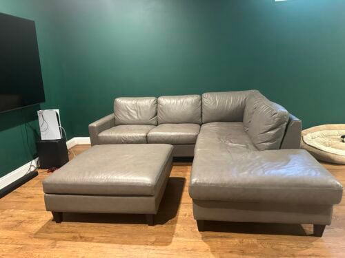 Like the title says, in 2 coats I achieved a complete color change and the exact effect I wanted. We got a very nice couch from a friend for a deal. Only one problem- it was grey! Nothing wrong with grey couches, but it was not going to go with our classic, movie and bar room! I found this product from an old YouTube video and thought it was too good to be true. I ended up researching and seeing all of the amazing reviews, so I decided to buy it. Best decision I’ve made!