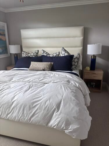 Headboard from tan to peppercorn. Only needed a little bit. 2 coats of Rub & Restore 1 hour time, kitchen dish sponge and a water spray bottle to keep sponge a little bit moist and bam it was easy. The studs on bed I just rub with old white tee shirt. Thanks Rub & Restore. I told my friends and family, and they will be ordering soon. So will I, thanks LOL!