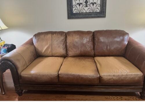 We scored this leather loveseat at a thrift store. Never liked the color though. My hubby found your website and we ordered. What a drastic improvement. It still needs a little love but we are so happy with the results. Need to order more for the stand alone recliner.